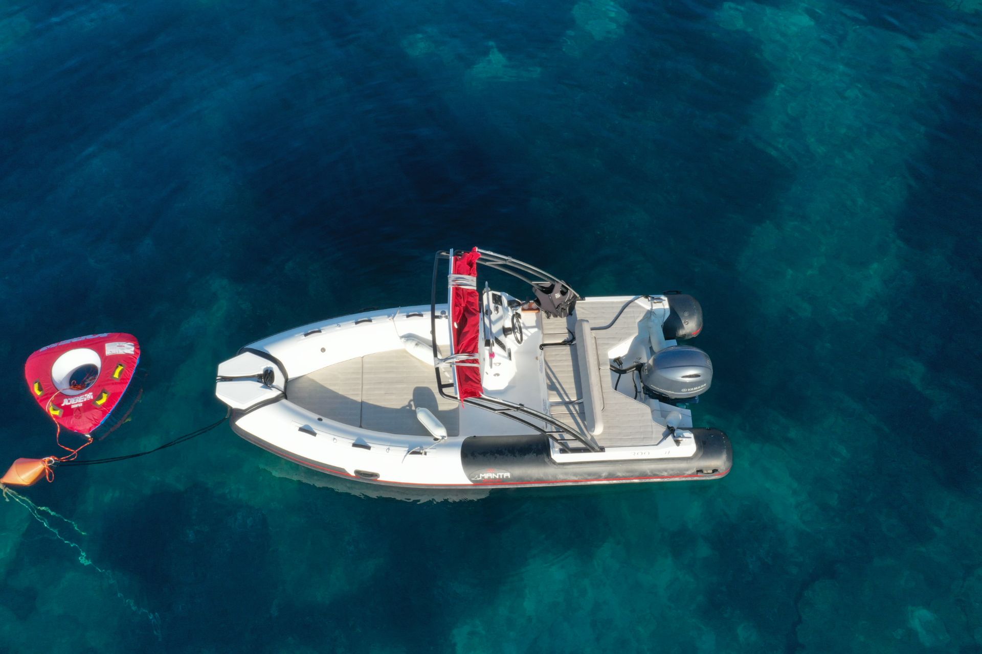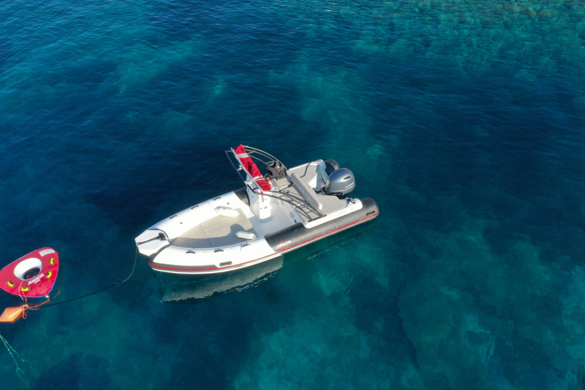 The Manta 555 is the smallest Manta boat model in our fleet and has excellent floatation characteristics. It is a perfect boat for a family of 4-6. Plenty of lying surface at the front as well as in the back makes it perfect for anchoring in nearby bays where you will be able to enjoy the nature away from crowdy beaches. With plenty of storage space and powerful Yamaha 115hp engine, it is perfect for longer daily trips and also water sport activities. Suitable for beginners as well as experienced drivers.